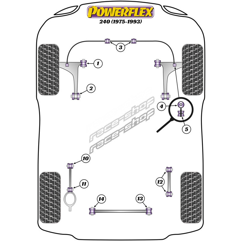 Powerflex Silentblok predného stabilizátora Volvo 240 (1975 - 1993)