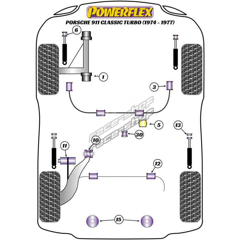 Powerflex Silentblok predného horného uloženia Porsche 911 Classic (1974-1977) Turbo