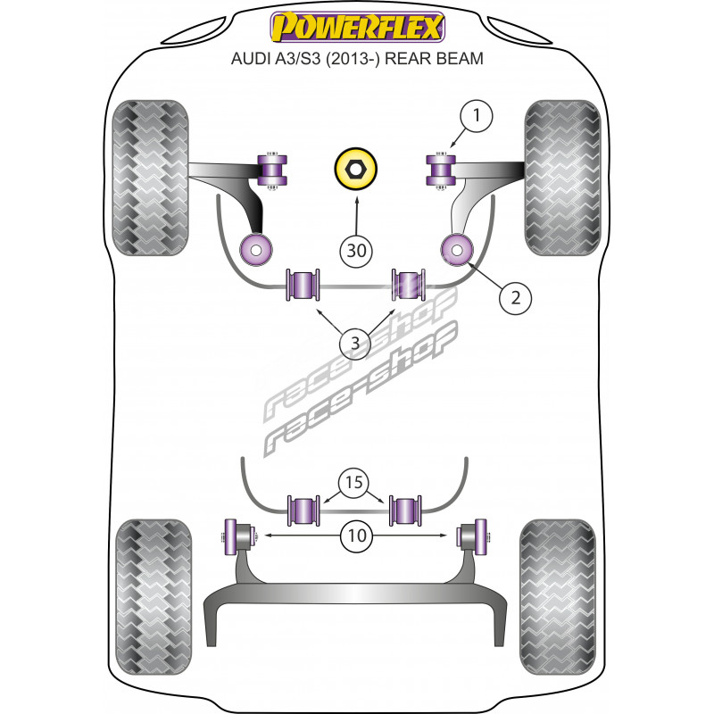 Powerflex Silentblok predného stabilizátora 25mm Audi A3 MK3 8V (2013-) Rear Beam