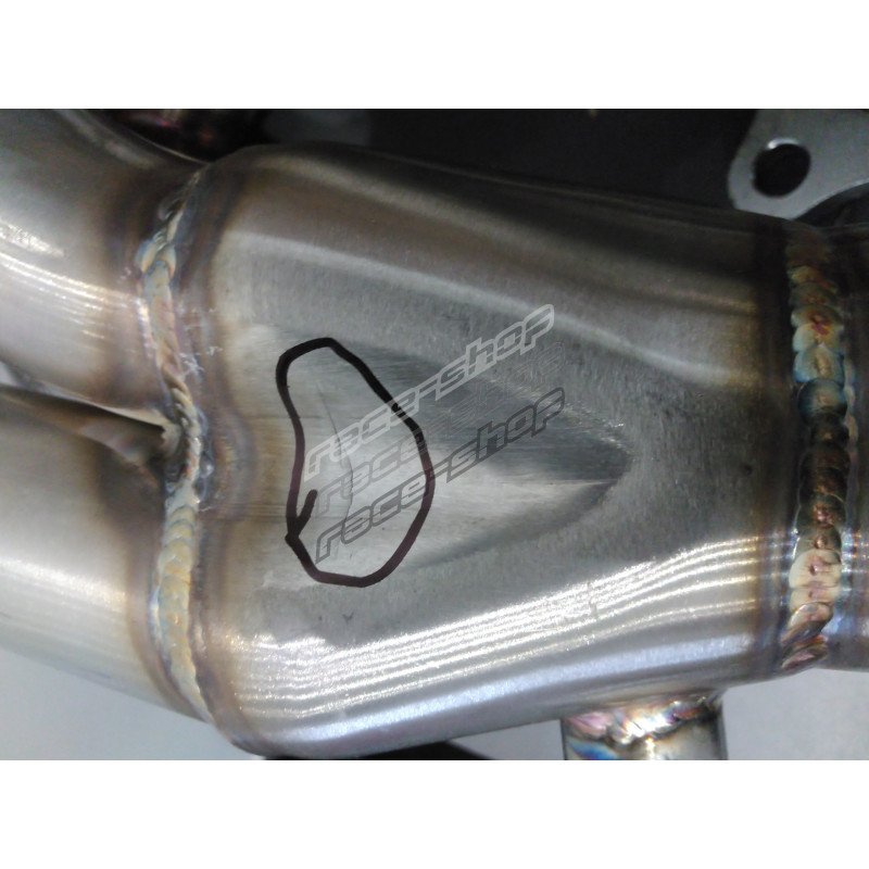 The exhaust manifolds have a microcrack in two places with a black marker.