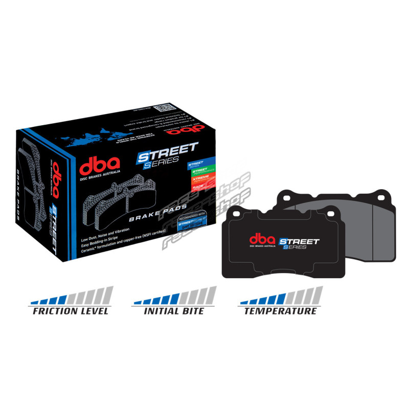 DBA recommends STREET SERIES brake pads for everyday use in passenger cars, SUVs, and light commercial vehicles. For best results, pair with DBA STREET SERIES plain or T2 slotted disc rotors to improve first-application effectiveness and reduce bed-in time.
