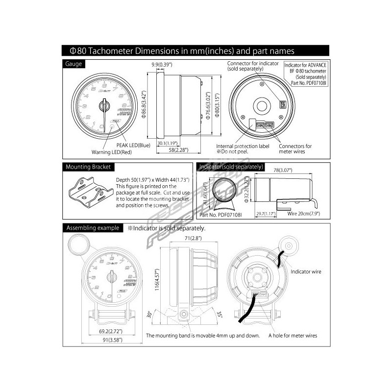 These gauges also include peak/warning memory, a 3-minute data replay function, and built-in self-diagnostics for wiring or communication issues. When connected to the ADVANCE Control Unit, installation is easy via daisy-chain wiring, and integration with ADVANCE ZD enables automatic dimming. Accessories such as a mounting bracket, meter cup, and bezel are included.