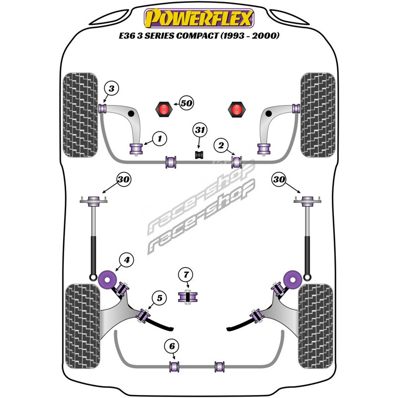 Powerflex Sada silentblokov zadného spodného ramena BMW 3 Series E36 Compact (1993-2000)