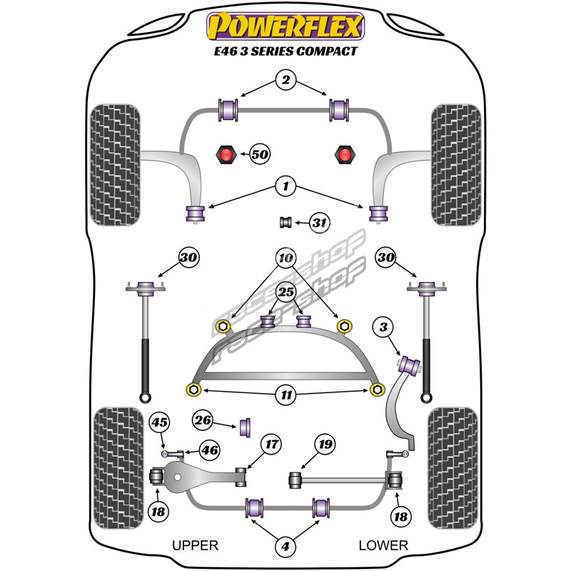 Powerflex Vnútorný silentblok zadného horného ramena BMW 3 Series E46 (1999 - 2006) Compact
