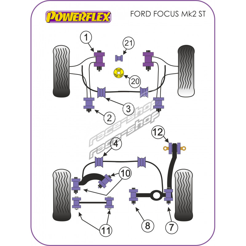 Powerflex Silentblok zadného spodného ramena Ford Focus MK2 ST