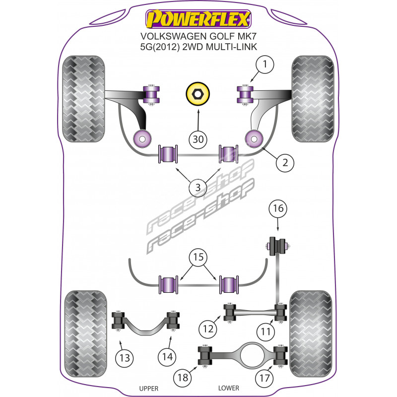 Powerflex Silentblok zadného stabilizátora 18.5mm Volkswagen Golf MK7 5G 2WD Multi-link