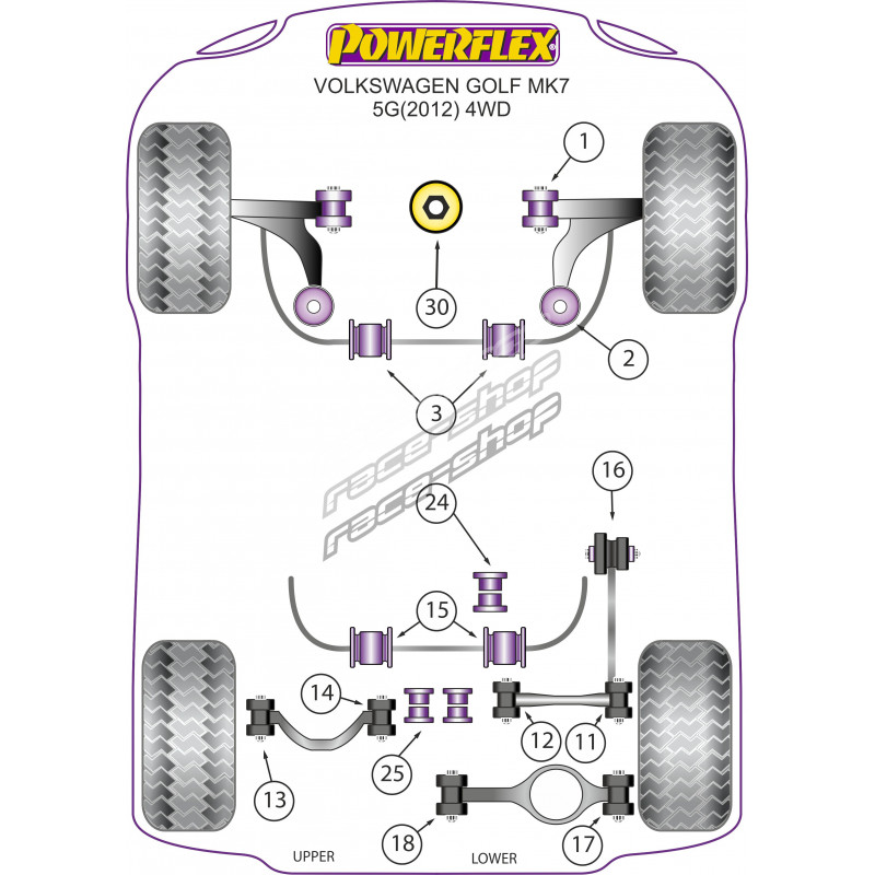 Powerflex Vnútorný silentblok zadného horného ramena Volkswagen Golf MK7 5G 4WD