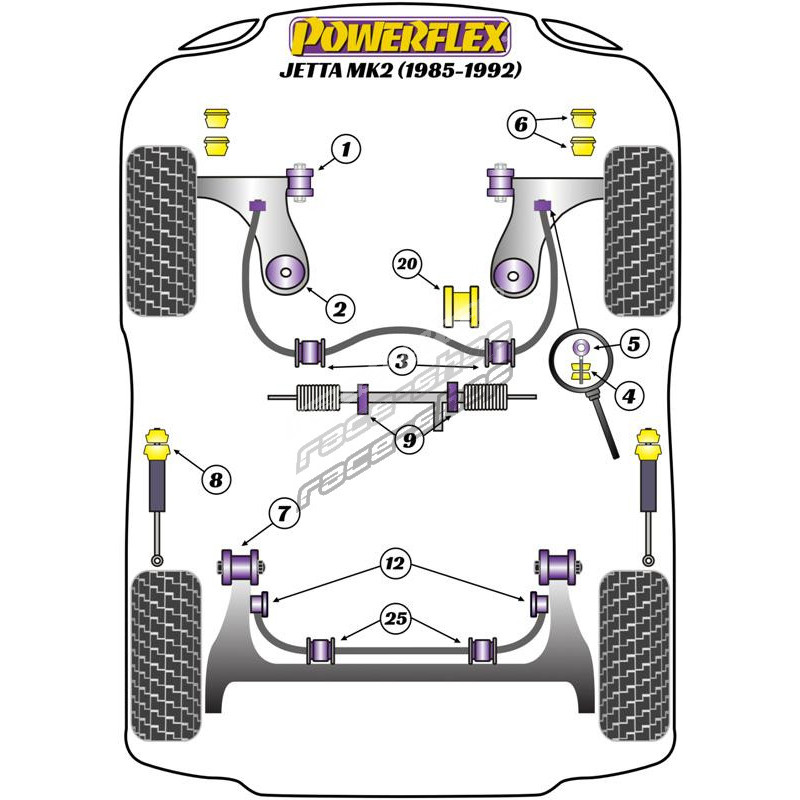 Powerflex Silentblok uloženia zadného tlmiča Volkswagen Jetta MK2 (1985-1992)