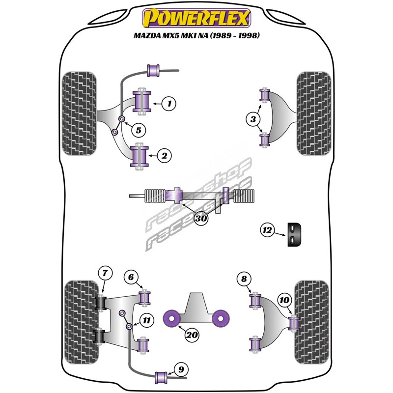 Powerflex Silentblok zadného horného ramena Mazda MX-5, Miata, Eunos Mk1 NA