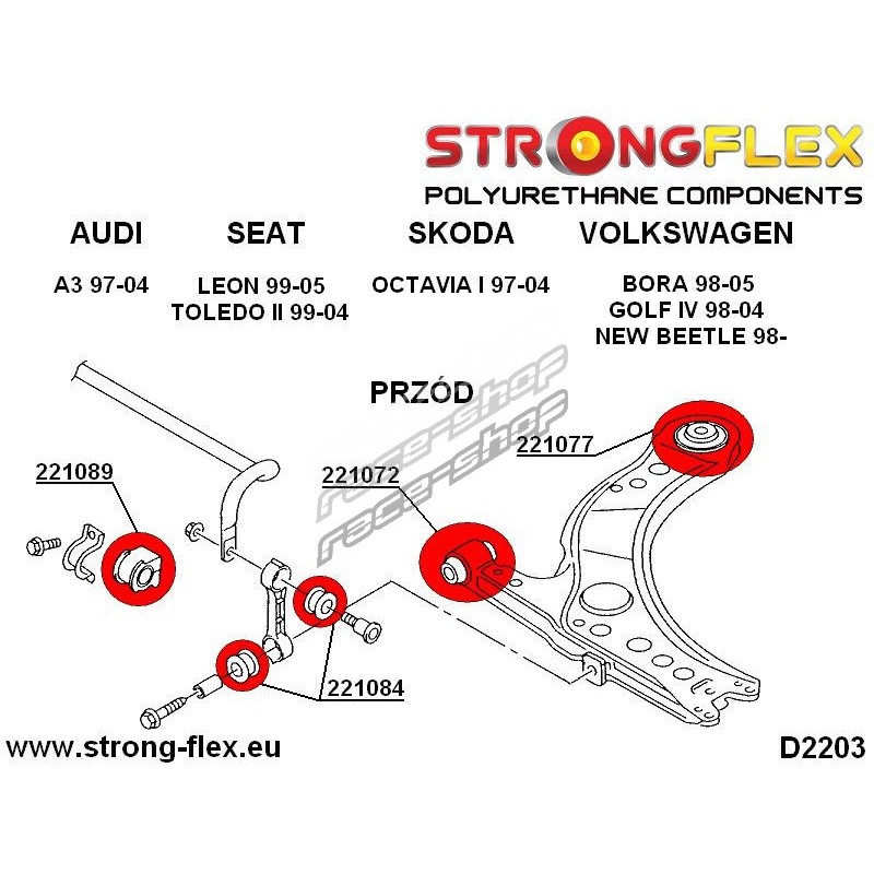 STRONGFLEX - 221084B: PREDNÝ stabilizátor - silentblok do tyčky