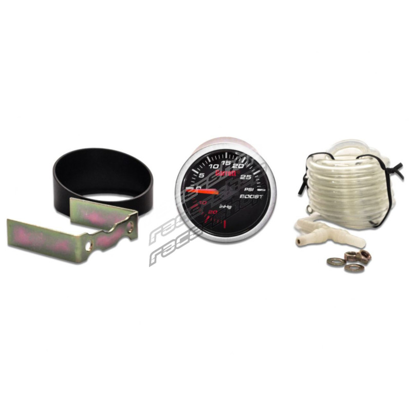 The Garrett Mechanical Boost Gauge is the perfect addition to your interior for the important job of accurately monitoring your boost levels. The gauge has a sleek design and features a black face, white backlit numbers, and a brushed aluminum ring. The gauge monitors boost from 30 Hg of vacuum to 30 psi of boost. Gauge kit comes with vacuum line, hardware, mounting brace and installation instructions.