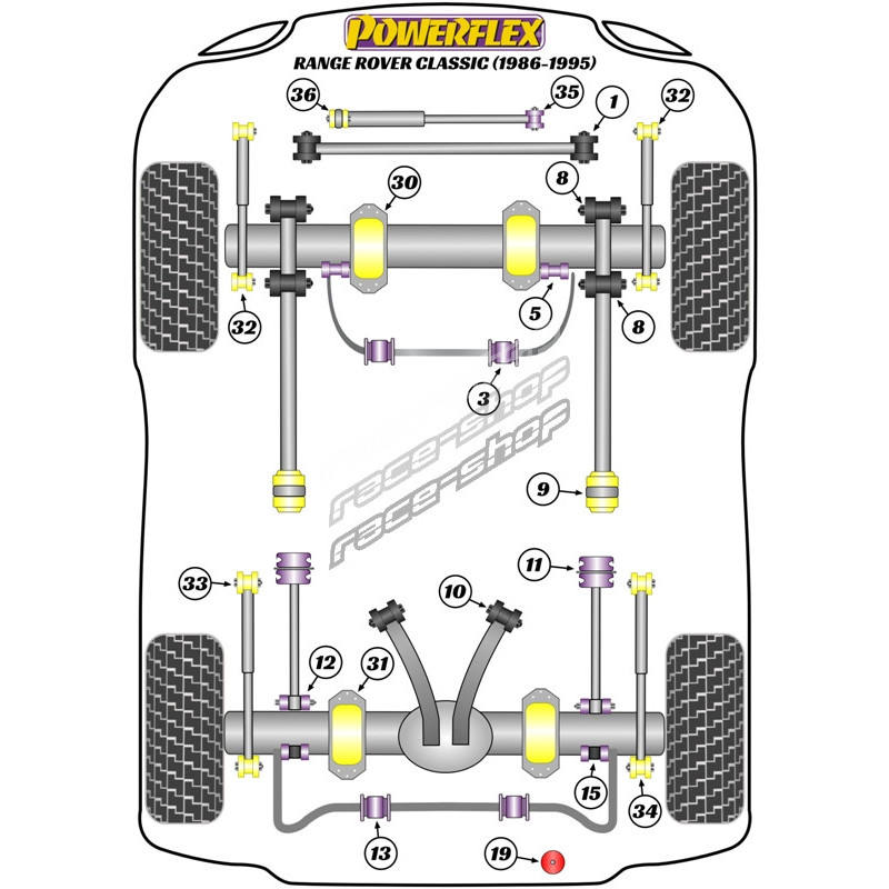 Powerflex Silentblok predného stabilizátora 25mm Land Rover Range Rover Classic (1986-1995)