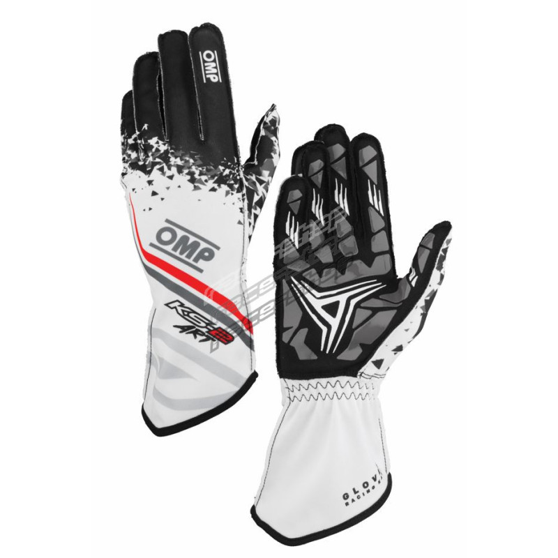 Závodné rukavice OMP KS-2 ART my2025 (vonkajšie šitie) biela/čierna/červená