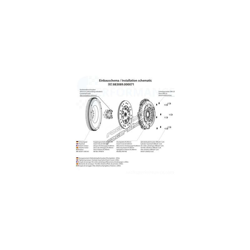 Typ: Performance Priemer: 240 mm Počet zubov: 23Tvar hriadeľa: 21,8 x 24,2 - 23Max. prenos krútiaceho momentu: 530 NmSet obsahuje nasledovné komponenty:1x prítlačný tanier: ( 883082 999798)1x spojková lamela: ( 881861 999878)1x zotrvačník: ( 003071 000181)Pošlite obsluhe obchodu otázku k tomuto produktu.