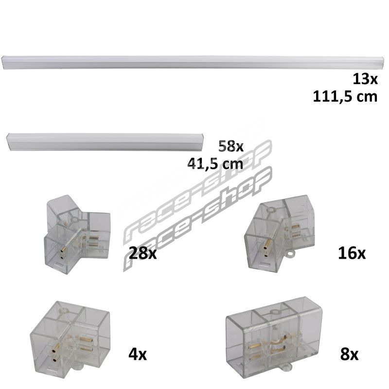 The 14-panel LED RGB hexagon system provides excelent illumination with 650 W power and 110–120 lm/W. The RGB function with easy remote control offers numerous lighting modes, for example switching colors, running light, dimming functions, rainbow, flashing.
