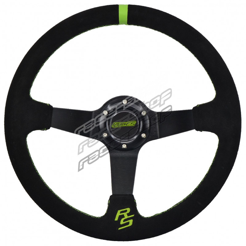 3 ramenný športový volant races apex, 350mm, semiš, 90mm odsadenie, zelený